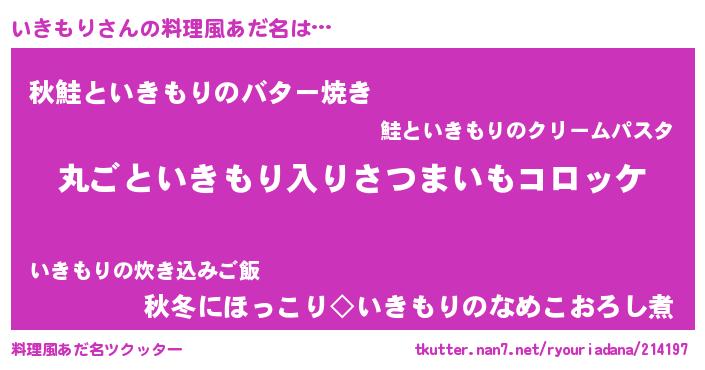 | ヘコむあだ名 | 『いきもり(爆)』『いきっふぃ~』 |