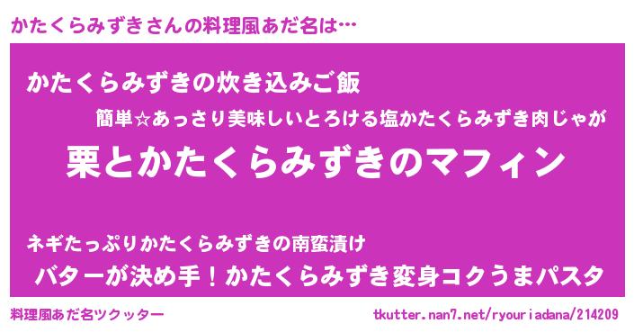 | ヘコむあだ名 | 『かたくらみずき(小並感)』『かたにー』 |