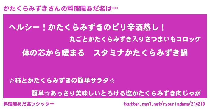 | 胡散臭い通販商品みたいなあだ名 | 『幸せが訪れる高級そうな壺…その名も「かたくらみずき」』 |