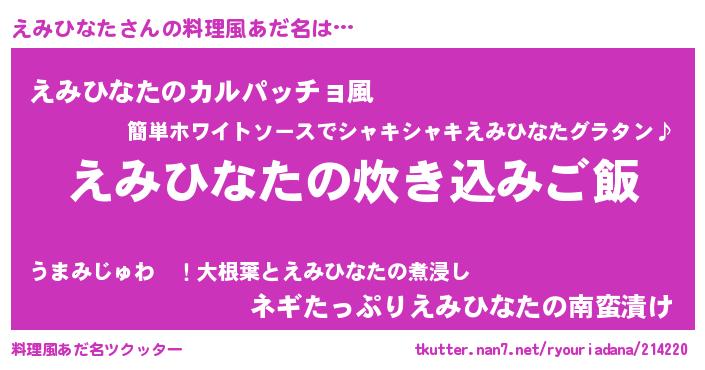 | 恥ずかしいあだ名 | 『プリティーえみひなた』『エミリンリン』 |