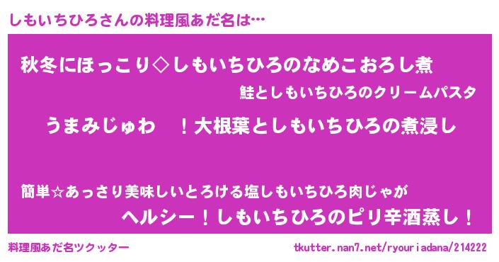 | ヘコむあだ名 | 『酢こんぶ』『しもいちひろ(遠い目)』 |