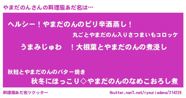 | ヘコむあだ名 | 『酢こんぶ』『やまだのん(遠い目)』 |