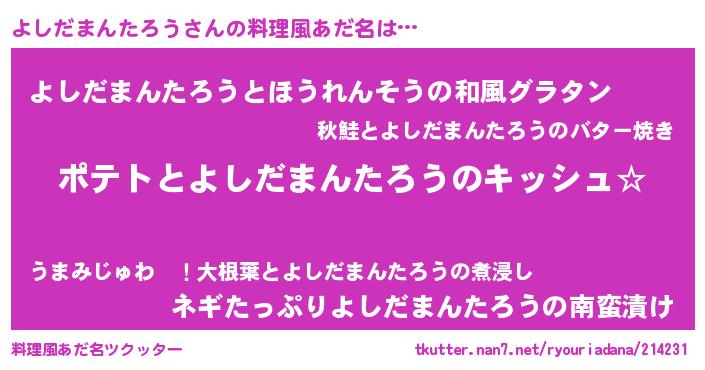 | 意味不明あだ名 | 『とにかく怪しいよしだまんたろう』 |