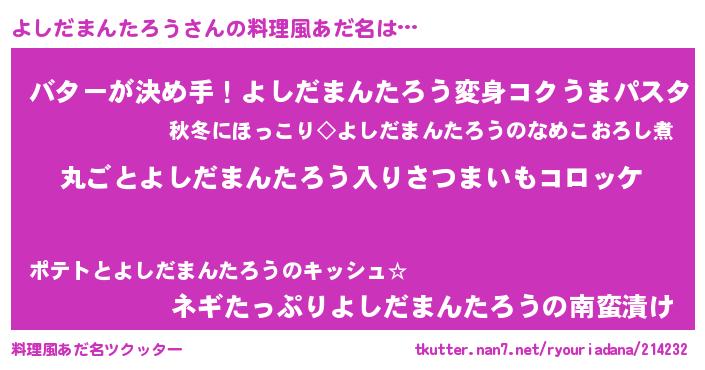 | 欧米人風あだ名 | 『ダレノガレよしだまんたろう』 |