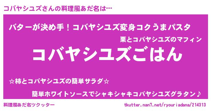 | ヒーロー風カッコイイあだ名 | 『愛の使者コバヤシユズ』『魔戒騎士コバ』 |