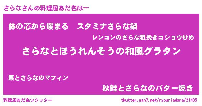 | 胡散臭い通販商品みたいなあだ名 | 『運命の人と巡り会える高級そうな皿…その名も「さらな」』 |