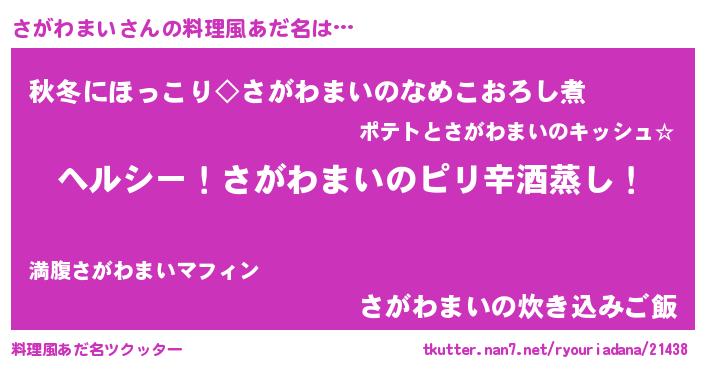 | 意味不明あだ名 | 『自称さがわまい』『永久保存さがわまい』 |