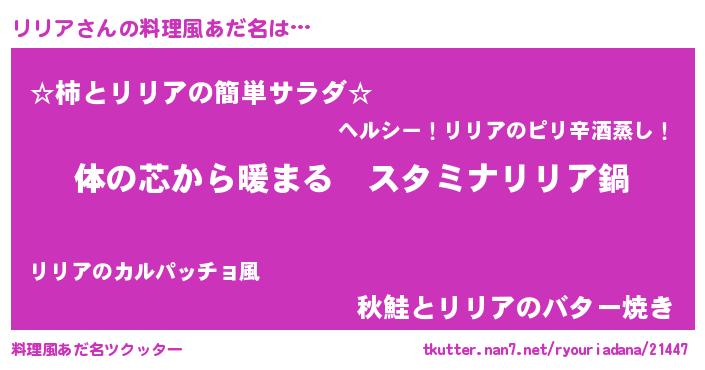 | 意味不明あだ名 | 『リリアフォーエバー』『永久保存リリア』 |