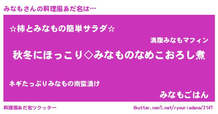 | 胡散臭い通販商品みたいなあだ名 | 『前代未聞の健康食品…その名も「みなも」』 |