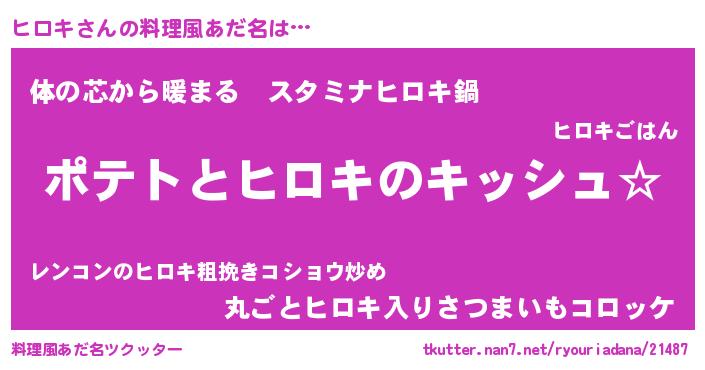 | ヘコむあだ名 | 『ヒロを』『なまこ酢』『ヒロにゅー』 |