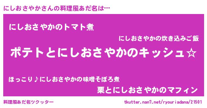 | 女子向けラノベタイトル風あだ名 | 『にしおさやかの卵を拾いまして』 |