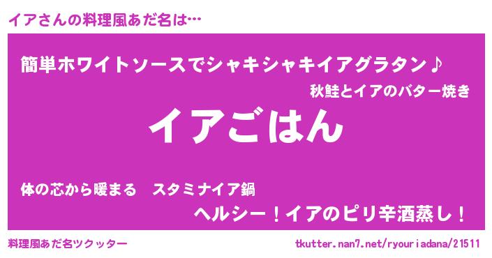 | ヘコむあだ名 | 『イアを』『イア(苦笑)』『酢こんぶ』 |