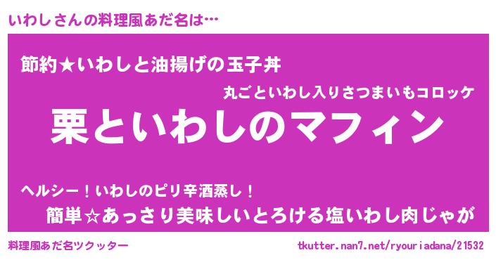 | 男性向けラノベタイトル風あだ名 | 『はたらくいわしさま!』 |