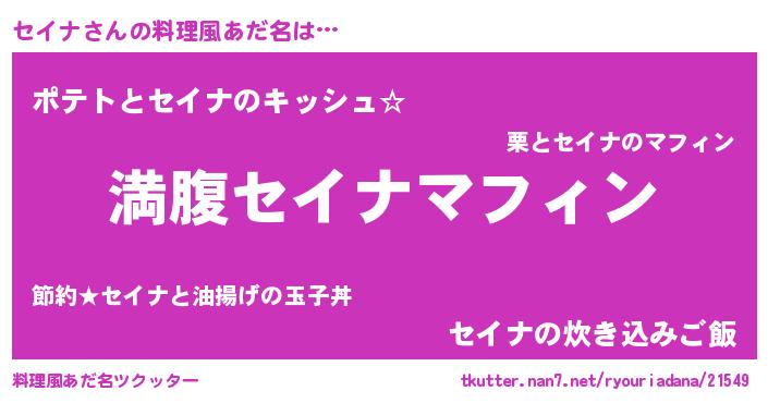| 男性向けラノベタイトル風あだ名 | 『セイナという概念が存在しない退屈な世界 』 |
