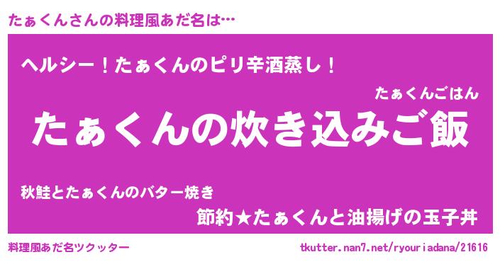 | ヒーロー風カッコイイあだ名 | 『最強戦士タァクン』『スーパータァクン』 |