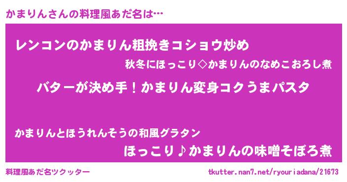 | ヒーロー風カッコイイあだ名 | 『慈愛の使者かまりん』『炎刃騎士カマ』 |