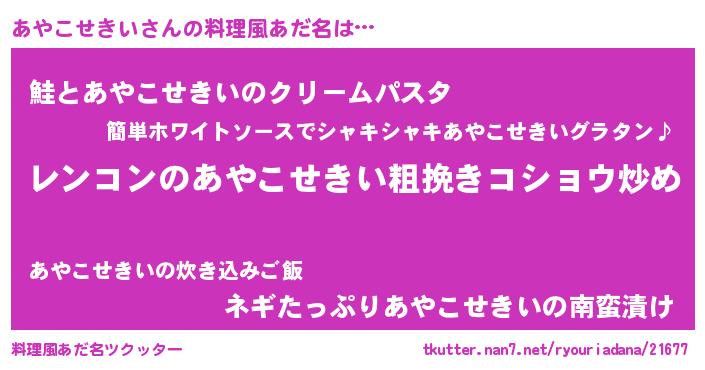 | 意味不明あだ名 | 『自称あやこせきい』 |