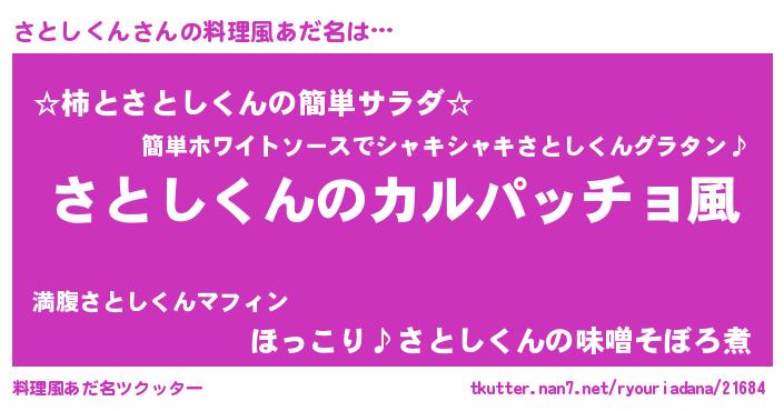| 男性向けラノベタイトル風あだ名 | 『魔弾の王とさとしくん』 |