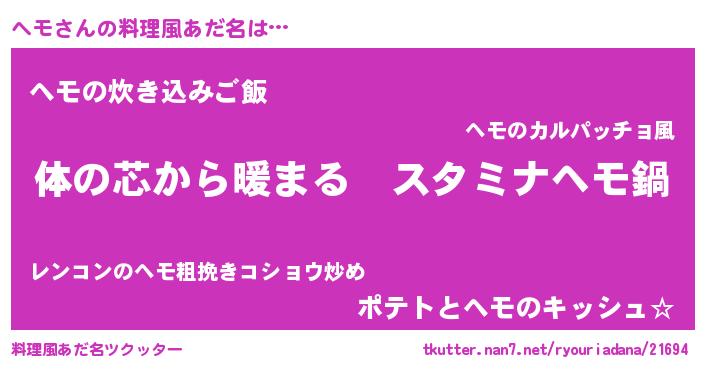 | ポケモン風あだ名 | 『ヘモダネ』『メロヘッモ』『ヒヘモ』 |