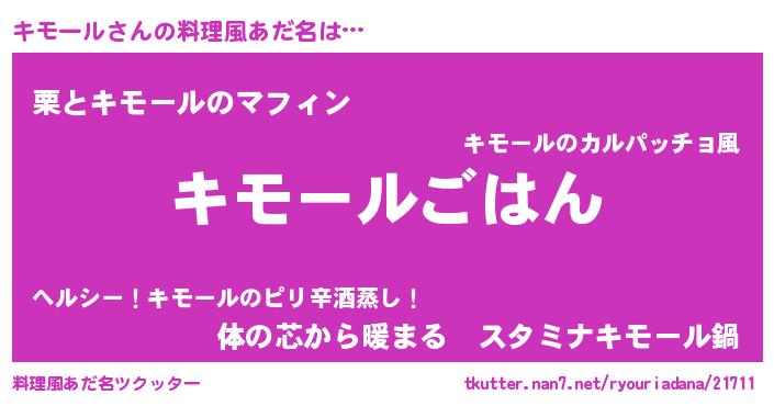 | 意味不明あだ名 | 『めかぶ科キモール属』『自称キモール』 |