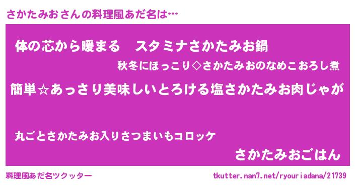 | 意味不明あだ名 | 『永久保存さかたみお』 |