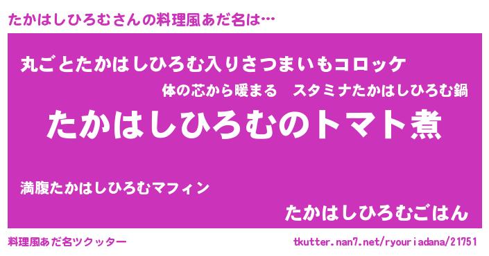 | 女子向けラノベタイトル風あだ名 | 『たかはしひろむ夫妻のなれそめ』 |