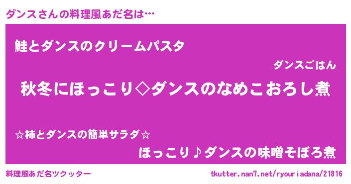| 男性向けラノベタイトル風あだ名 | 『ダンスに滅ぼされるだけの簡単なお仕事です』 |