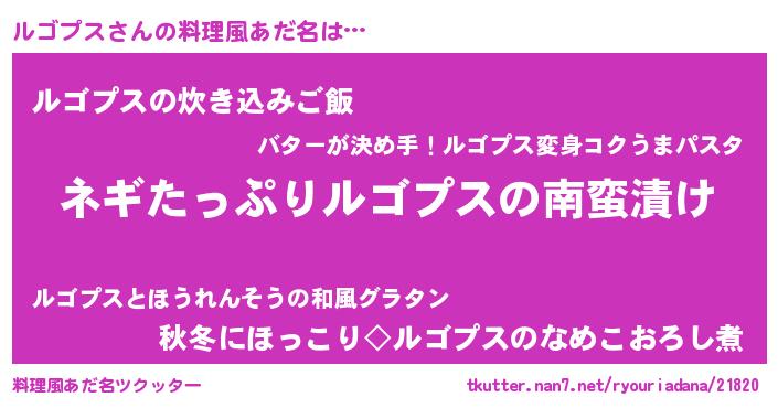 | ヘコむあだ名 | 『ルゴもー』『ルゴっぺ』『なまこ酢』 |