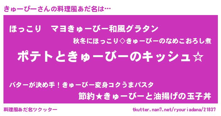 | 女子向けラノベタイトル風あだ名 | 『きゅーびーの卵を拾いまして』 |