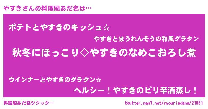 | ピコ太郎風あだ名 | 『ヤス次郎』『ピヤ太郎』『ピコヤ郎』 |