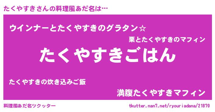 | ファンタジー風あだ名 | 『ユリタクヴァット』『タクディッシュ』 |