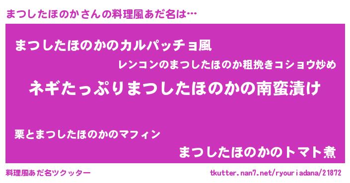 | 胡散臭い通販商品みたいなあだ名 | 『億万長者になれるブレスレット…その名も「まつしたほのか」』 |