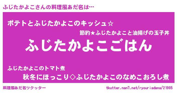 | 意味不明あだ名 | 『めかぶ科ふじたかよこ属』 |