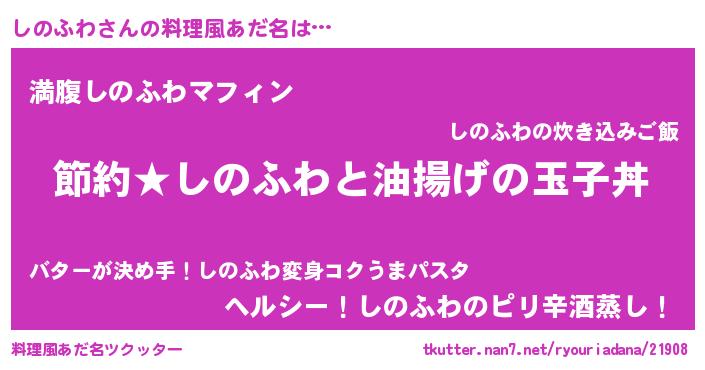 | 意味不明あだ名 | 『ペロリンしのふわ』『永久保存しのふわ』 |