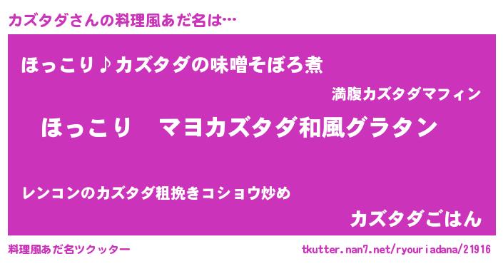 | 男性向けラノベタイトル風あだ名 | 『この素晴らしい世界にカズタダを!』 |