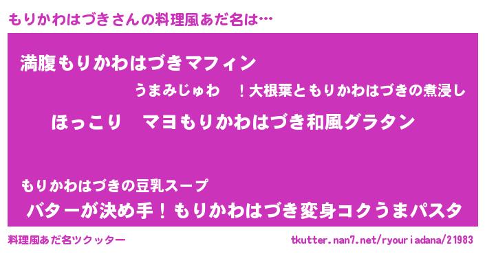 | ヘコむあだ名 | 『もりかわはづき(小並感)』『レバニラ』 |