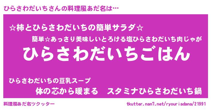 | 胡散臭い通販商品みたいなあだ名 | 『幸せが訪れる高級そうな壺…その名も「ひらさわだいち」』 |