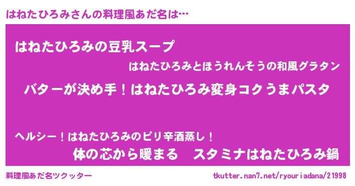 | 胡散臭い通販商品みたいなあだ名 | 『お金では代えられないマグネット磁石…その名も「はねたひろみ」』 |