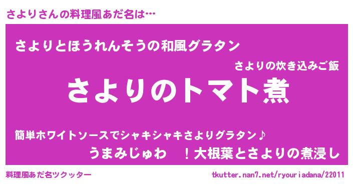 | 女子向けラノベタイトル風あだ名 | 『さより夫妻のなれそめ』 |