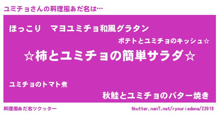 | ピコ太郎風あだ名 | 『ピコユ郎』『ユミ一郎』『ユユ太郎』 |