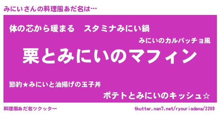 | 意味不明あだ名 | 『みにいフォーエバー』『ペロリンみにい』 |