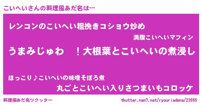 | ヘコむあだ名 | 『酢こんぶ』『こいへい(遠い目)』 |