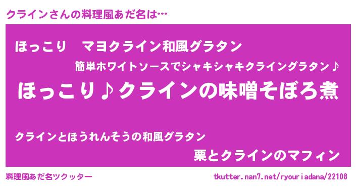 | 男性向けラノベタイトル風あだ名 | 『クラインの憂鬱』 |