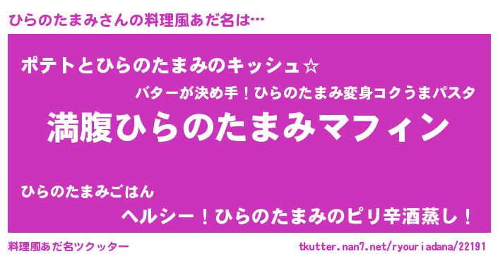 | 胡散臭い通販商品みたいなあだ名 | 『絶対に幸福をもたらす健康食品…その名も「ひらのたまみ」』 |