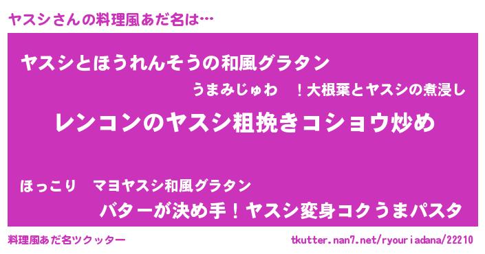 | ヒーロー風カッコイイあだ名 | 『超時空戦士ヤスシ』『慈愛の使者ヤスシ』 |
