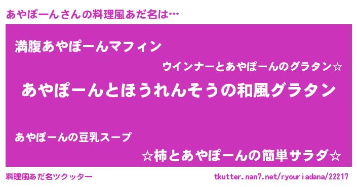 | ヘコむあだ名 | 『あやぽーん(笑)』『牛乳』 |