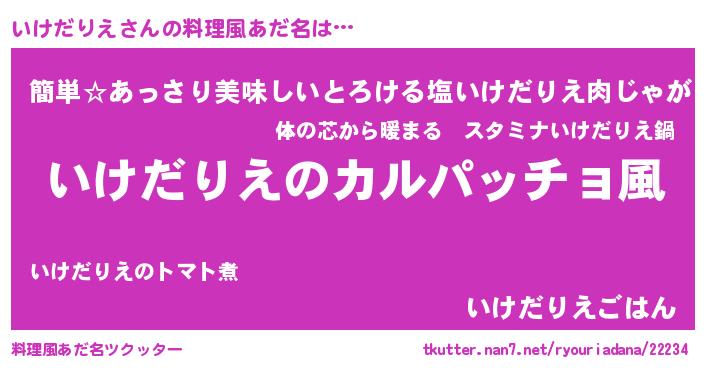 | 意味不明あだ名 | 『住所不定無職いけだりえ(84歳)』 |