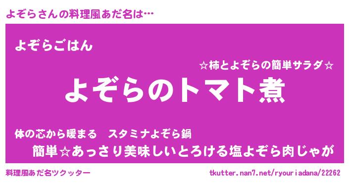 | ヘコむあだ名 | 『よぞら(笑)』『牛乳』『よぞにー』 |