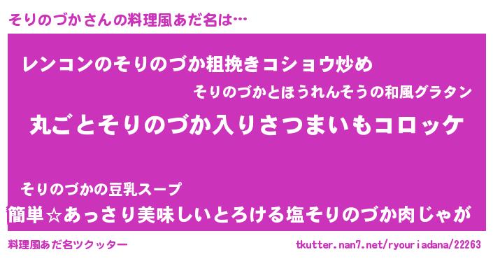 | 意味不明あだ名 | 『住所不定無職そりのづか(12歳)』 |