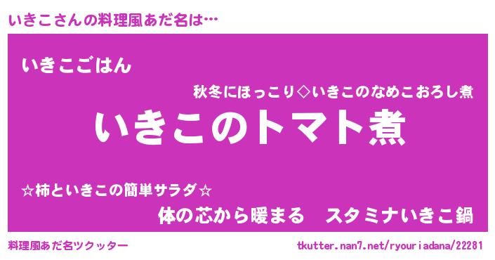 | 女子向けラノベタイトル風あだ名 | 『いきこ夫妻のなれそめ』 |
